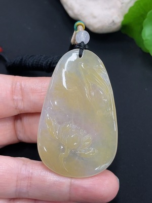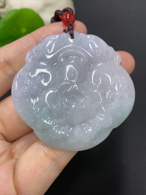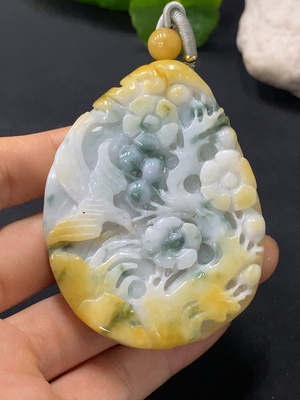 F40697165 Jadeite Flower Blooms and Wealth Pendant