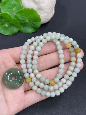F39663147 Jadeite Bead Necklace with Peace Buckle Sell as a Lot Approx 5.7mm Non-Gold (Yellow Beads Non-A)