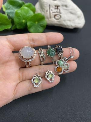 F1227712 Jadeite set with some cracks, non-gold inlaid