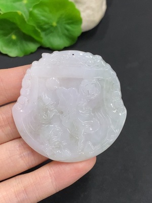 F0727144 Jadeite Pendant with Floating Flowers and Natural Veins