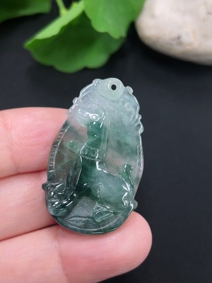 F27093394 Jadeite Lotus Leaf Fish Pendant (Color Origin Undetermined)