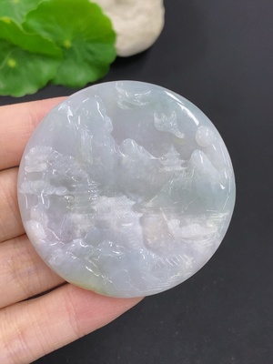 F33875961 Jadeite Pendant Landscape Guanyin