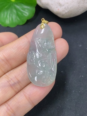 F28242191 Jadeite Ascending Prosperity Pendant with 18k Gold Clasp, Total Weight Approximately 0.5g
