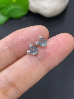 F39554408 Jadeite cabochon ear studs in 18K gold, total weight approximately 0.5g (excluding ear stoppers) with diamond accents