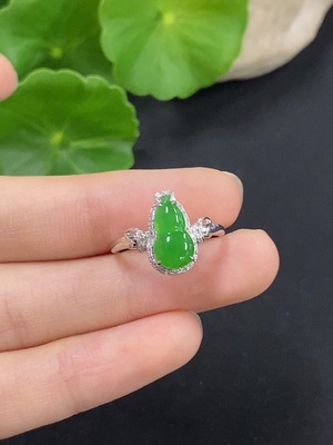 F39638814 Jadeite Gourd Inlaid Ring 18K Gold with Diamond Size 15 Total Weight Approx. 2.02g