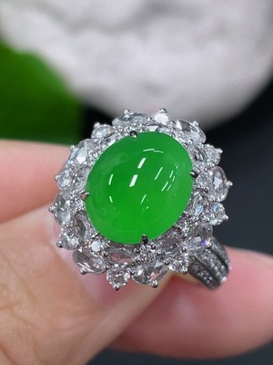 F37452307 Jadeite cabochon ring with 18K gold, size 13, total weight approximately 5.9g (accented with diamonds)
