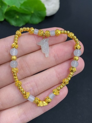 F37459289 Jadeite Inlaid Bracelet Pendant 18K Gold with 99% Gold Content Total Weight Approximately 3.2g