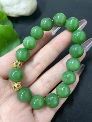 H39673166 Hetian Jade Jasper Bracelet Approx.11.8mm Total Weight About 40.8g Non-Gold