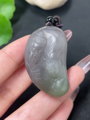 H24828174 Hetian Jade Buddha Pendant, total weight approx. 74.63g (including rope), containing other mineral components, undetermined skin color origin