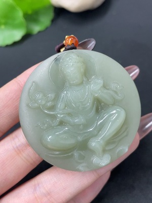 H39545045 Hetian Jade Jasper Pendant, Tara, Total Weight Approx. 84g (Including Rope), Beads Not Hetian Jade
