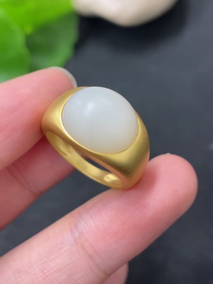 H37462127 Hetian Jade Inlaid Ring 18k Gold Size 14 Total Weight Approx. 4.6g