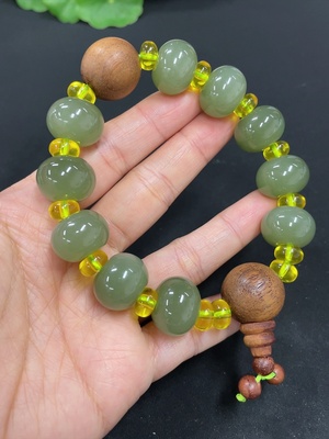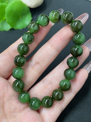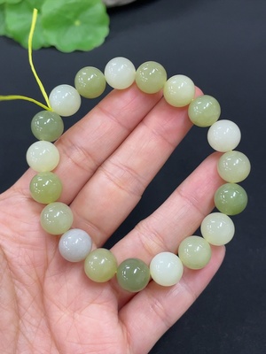 H39634641 Hetian Jade Jasper Bracelet, approx. 10mm beads, total weight approx. 30g