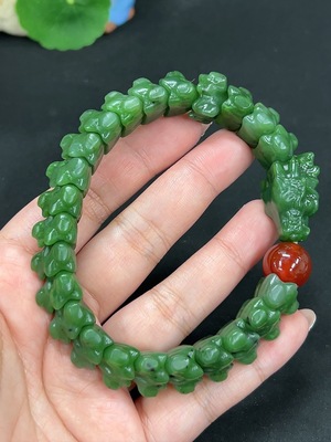 H39645676 Hetian Jade Jasper Dragon Bracelet Total Weight Approx. 76.3g Non-Hetian Jade Beads