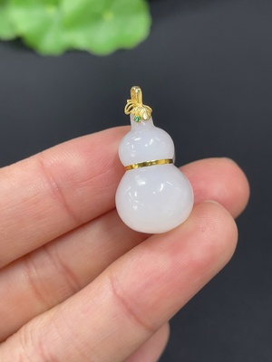 H39604126 Hetian Jade Pendant, Gourd, 18K Gold Clasp, 68% Gold Content in the Middle, Total Weight Approximately 4.1g