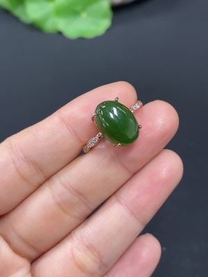 H38505953 Hetian Jade Ring with Inlaid Ring, Total Weight Approx. 6.5g, Non-Gold
