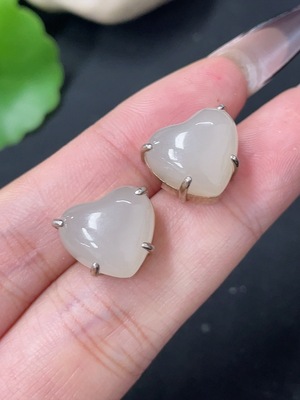 H39634407 Hetian Jade Inlaid Earrings Non-Gold Total Weight Approx. 5.7g
