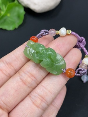 H39592088 Hetian Jade Pendant (Beads Not Hetian Jade, Total Weight Approx. 10.3g Including Cord)