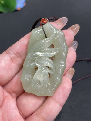 H32737978 Hetian Jade Pendant - Bamboo Announces Peace