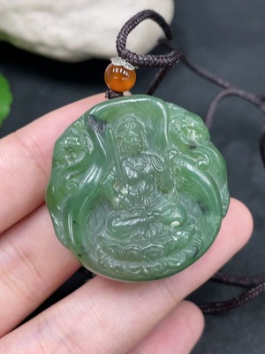 H31582208 Hetian Jade Pendant Fudō Myōō with Non-Hetian Jade Beads