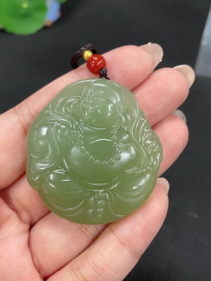 H39628197 Hetian Jade Pendant Buddha Total Weight Approx. [with rope] 37.4g