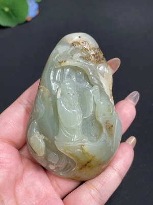 H32737480 Hetian Jade Handheld Piece "Poet" Total Weight Approximately 151.9g Undetermined Skin Color Origin