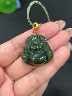 H36261416 Hetian Jade Pendant - Buddha, Total Weight (including rope): 17.7g, Beads not Hetian Jade
