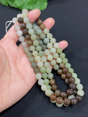 H39607140 Hetian Jade Bead Necklace, Approximately 8mm, Total Weight About 44.5g