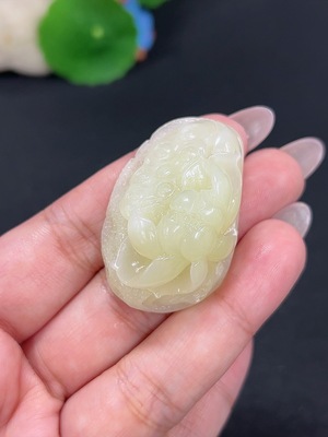 H40766940 Hetian Jade Pendant 'Prosperity in Bloom' with a total product weight of approximately 26.2g