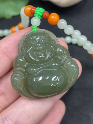 H36259508 Hetian Jade Pendant - Buddha with Non-Hetian Jade Beads, Total Weight (Including Chain) Approx. 45g