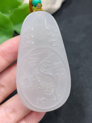H35194268 Hetian Jade Pendant, Dragon Plaque, Total Weight (including rope) 32.3g