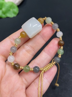 H35130424 Hetian Jade Bracelet, approx. 5.8mm beads, total weight approx. 13.7g, undetermined skin color origin, non-Hetian Jade accessory beads