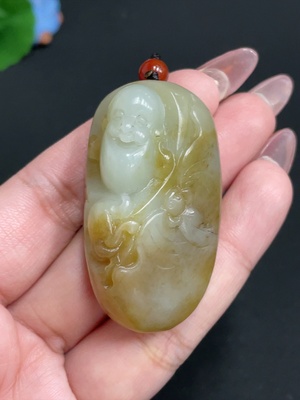 H31672186 Hetian Jade Handheld Piece - God of Wealth - Contains Other Mineral Components - Undetermined Skin Color Origin - Total Weight (Including Rope) Approx. 125.4g