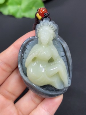 H39602781 Hetian Jade Pendant Guanyin with Non-Hetian Jade Chain