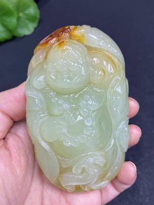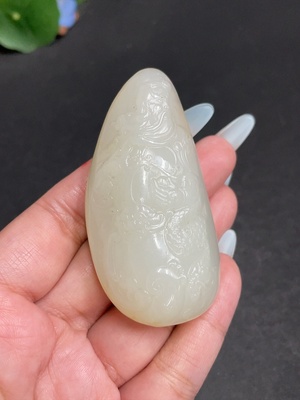 H33938753 Hetian Jade Handheld Piece Buddha Skin Color Origin Undetermined Total Weight Approx. 298.2g