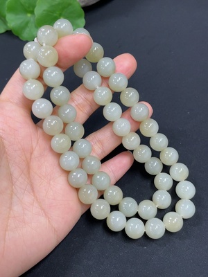 H39676204 Hetian Jade Bead Necklace Approx. 9.9mm Non-Gold Total Weight Approx. 79.3g
