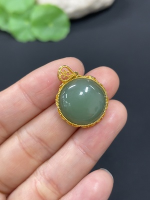 H39616330 Hetian Jade Cabochon Pendant with 18K Gold, Total Weight Approx. 4.4g