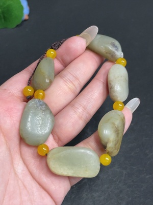 H28243897 Hetian Jade Bracelet, Undetermined Skin Color Origin, Non-Hetian Jade Beads, Total Weight Approximately 47.5g