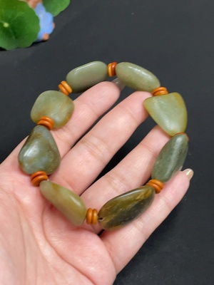 H30486736 Hetian Jade Bracelet (Containing Other Mineral Components, Undetermined Skin Color Origin, Non-Hetian Jade Beads, Total Weight Approximately 39.9g)
