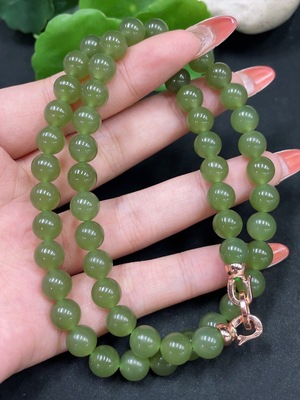 H35111796 Hetian Jade Bead Necklace Non-Gold Approximately 7.6mm Total Weight About 45.9g
