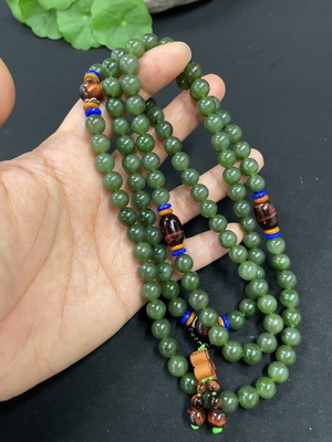 H39675975 Hetian Jade Bead Necklace, approx. 7.4mm, total weight approx. 76.7g, non-Hetian jade accessory beads