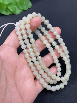 H39615777 Hetian Jade Bead Necklace, Approx. 5.6mm, Total Weight Approx. 33.9g