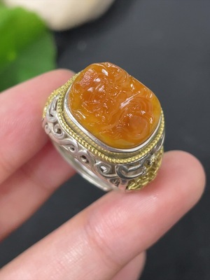 H37437731 Hetian Jade Inlaid Adjustable Ring, Undetermined Skin Color Origin, Non-Gold, Total Weight Approximately 10.2g
