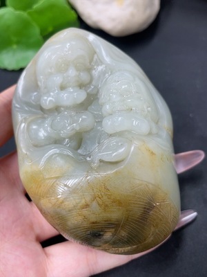 H39602867 Hetian Jade Ornament - Arhat, Contains Other Mineral Components, Undetermined Skin Color Origin, Total Weight Approximately 386.6g
