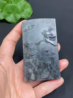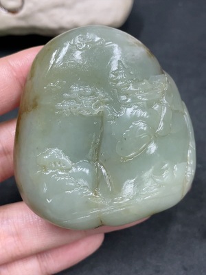 H32823360 Hetian Jade Handheld Piece - Landscape (Undetermined Skin Color Origin, Total Weight Approximately 120.4g)