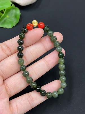 H26021962 Hetian Jade Bracelet, approx. 6mm, with non-Hetian Jade beads, total weight approx. 9.7g