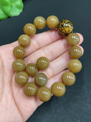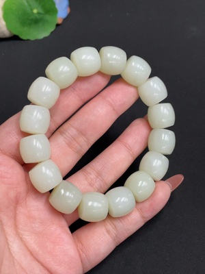 H35099938 Hetian Jade Bracelet Approx. 13.5mm Beads Total Weight About 75.5g