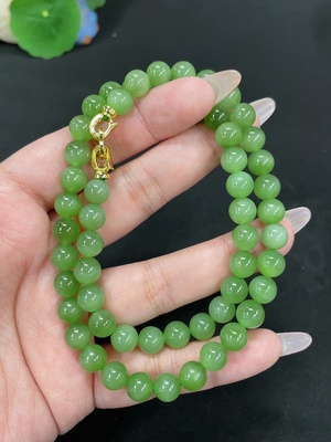 H33859479 Hetian Jade Bead Necklace Approx.7.8mm Total Weight Approx.43.3g