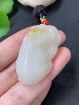 H39619724 Hetian Jade Handheld Carving - "Attaining High Official Rank" with Non-Hetian Jade Chain