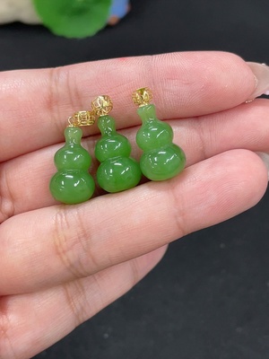 H39627656 Hetian Jade Inlaid Pendant Gourd Total Weight Approx.7.4g 18k