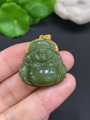 H22521976 Hetian Jade Buddha Pendant Inlaid with Non-Gold, Total Weight Approx. 9.1g